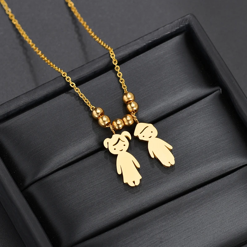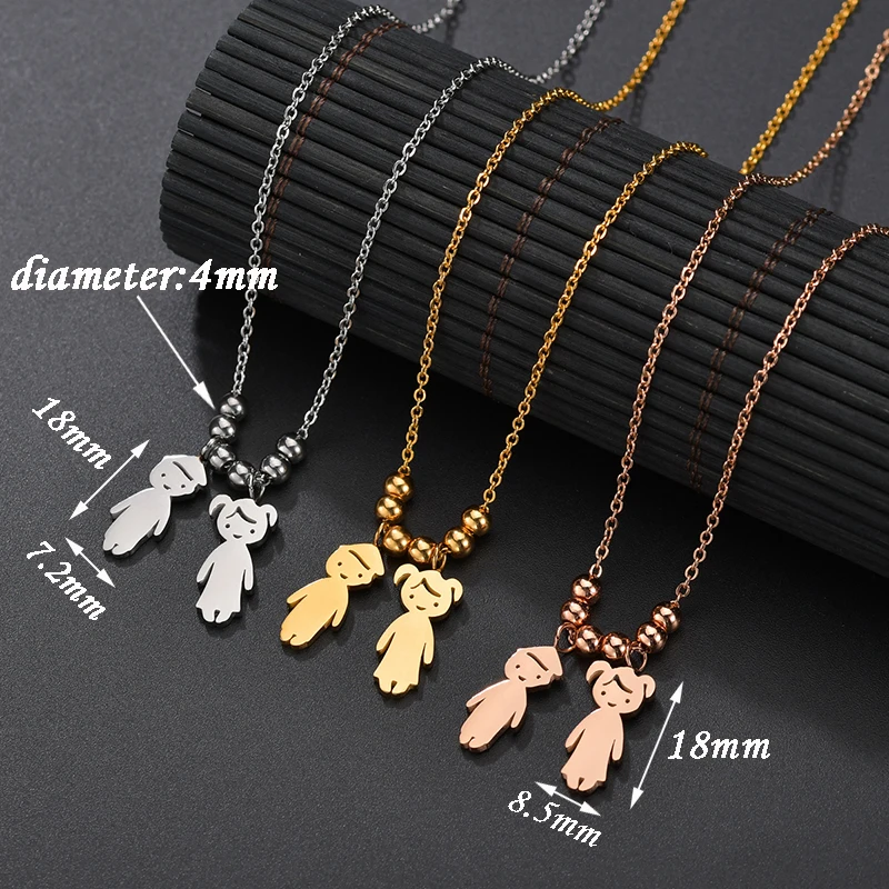 Best Atoztide Lovely Stainless Steel Boy Girls/Son Daughter Family Necklace Gold Love Figure Chain Neckl