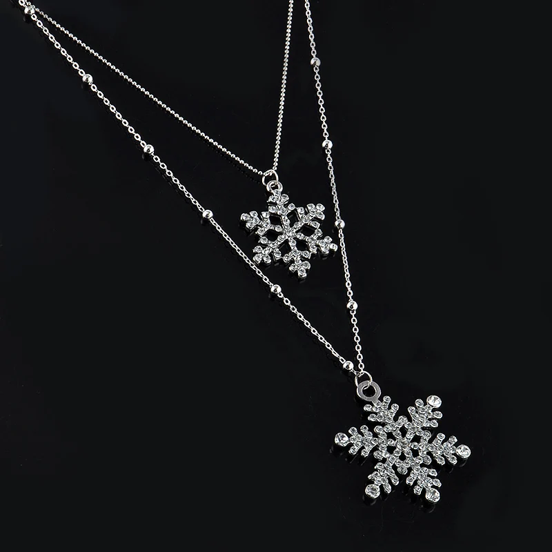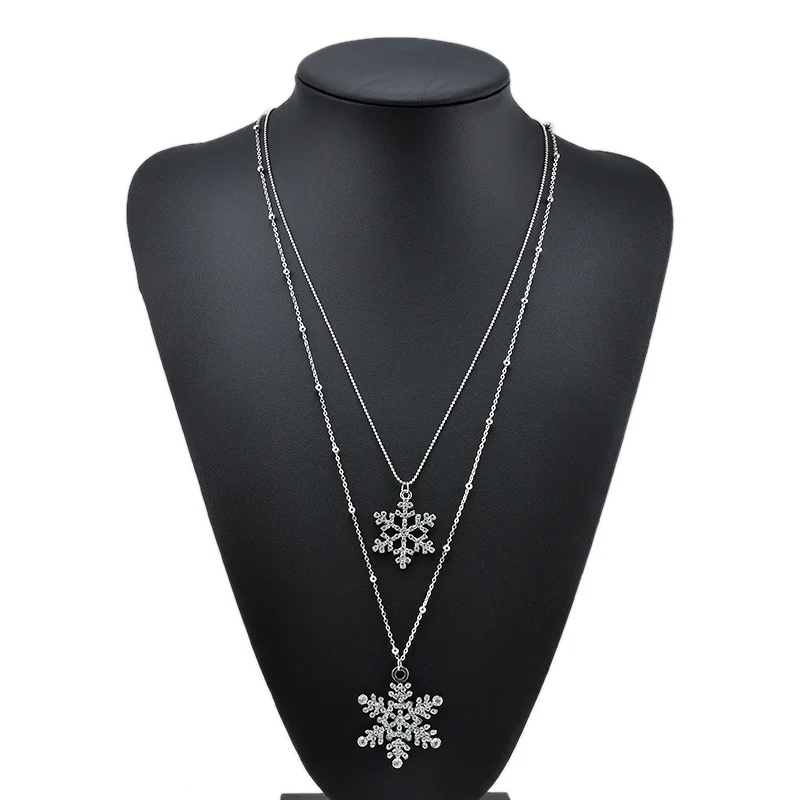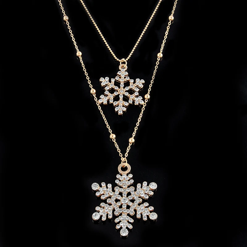 Best Fashion Gold Rhinestone Snowflake Pendant Necklaces Long Sweater Chain Double Layers Necklace & Pen