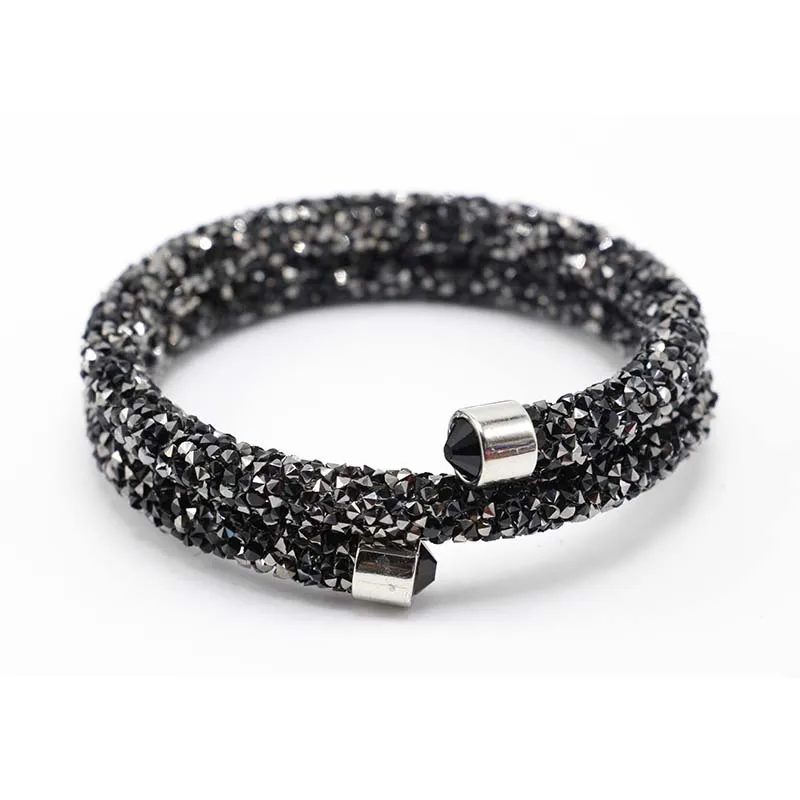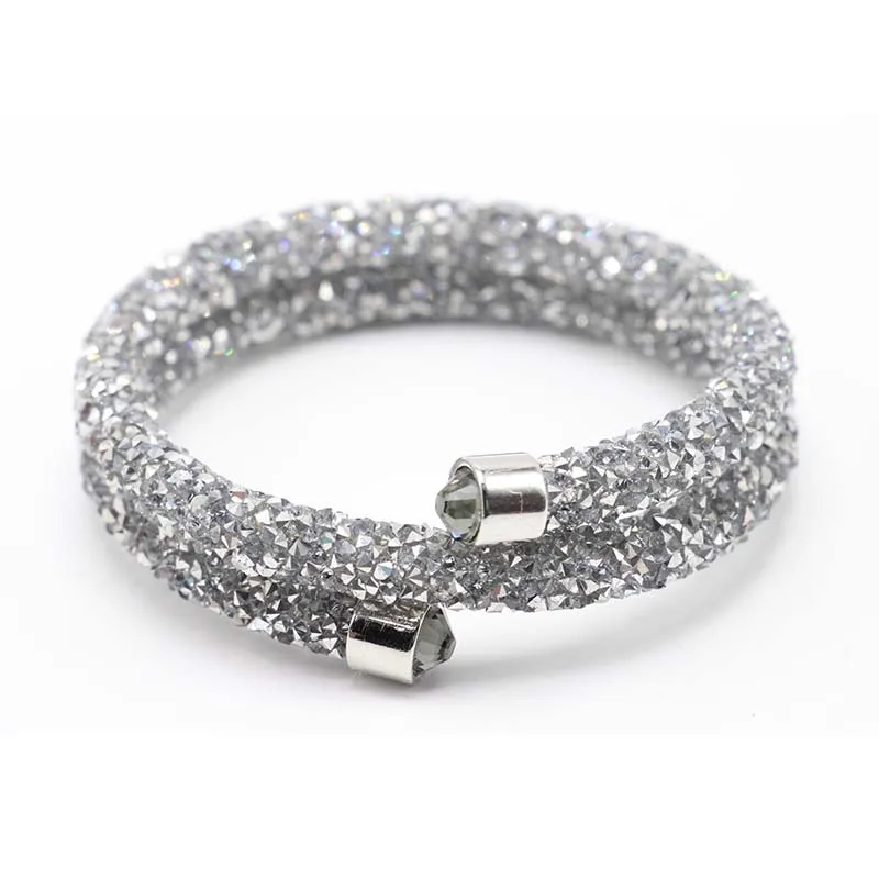 Best LE SKY Exquisite Single Circle Crystal Rhinestones Cuff Multi-layer Bracelet Bangles For Women New
