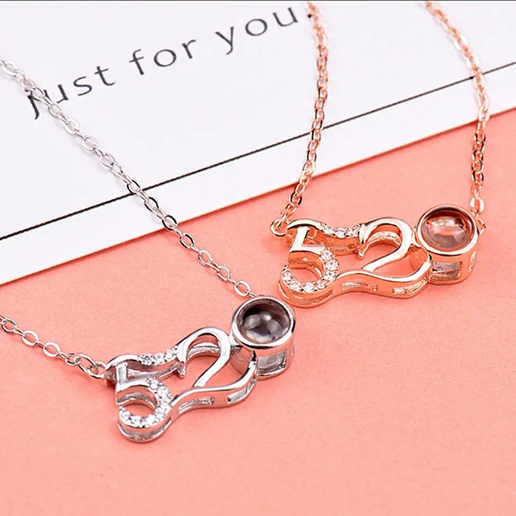 Best Romantic 100 Languages Pendant Necklace I love you Projection 520 Love Memory Wedding Necklace Fash