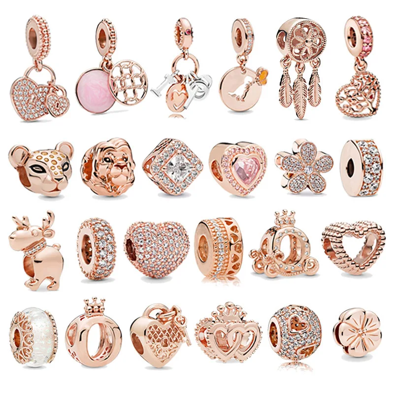 New Boosbiy 2pc Rose Gold Lion Crown Love Heart Pendant Charm fit Pandora Bracelets & Necklaces for Wom