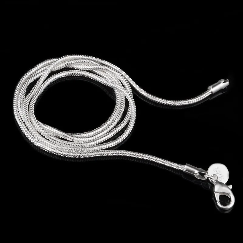 New 2mm (16" 18" 20" 22" 24inch) 925 Silver Plated Snake Chain Lobster Clasp Necklace Jewelry Findings