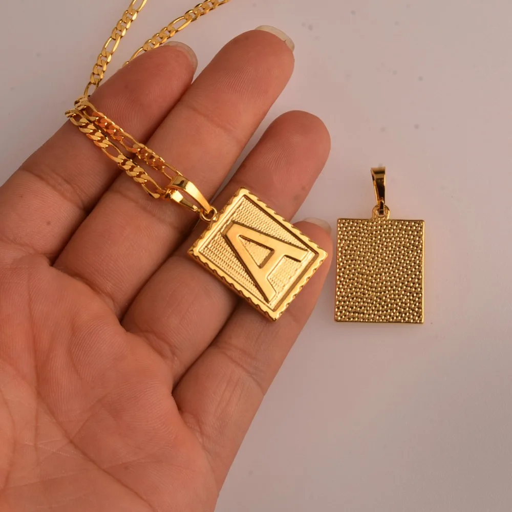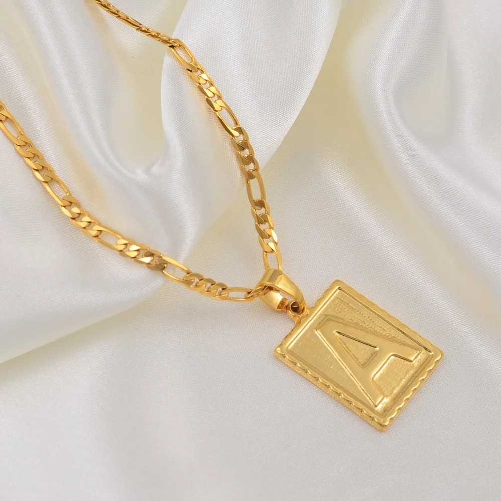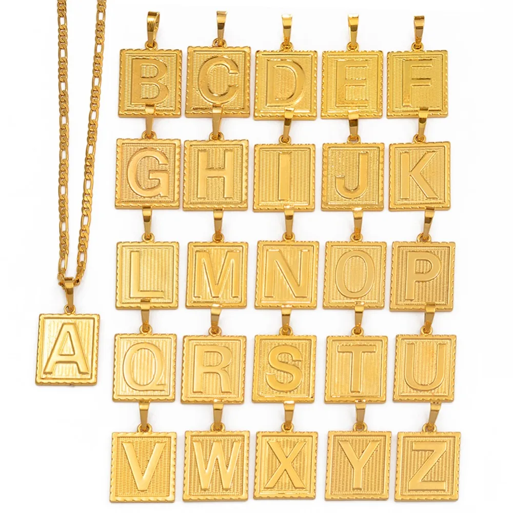 Best Anniyo A-Z Square Letters Necklace Gold Color Initial Pendant Chain for Men Women English Letter Al