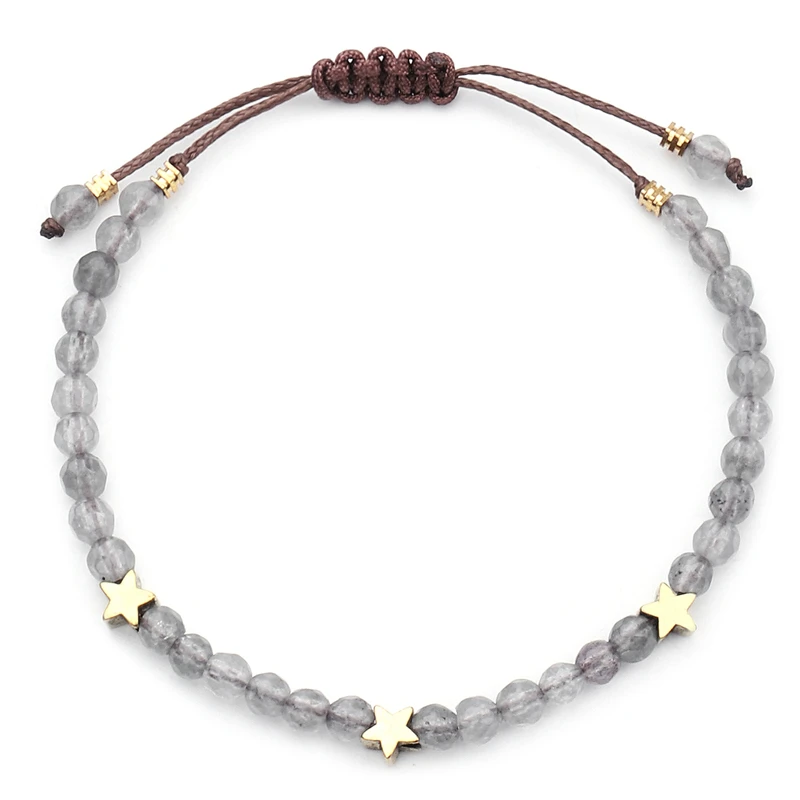 Best Natural Stone Beads Bracelet Women Handmade 4mm Crystal With Star Bracelets&Bangles Size Adjustable